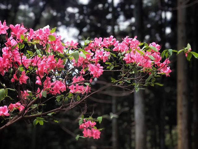 慕溪谷中杜鵑紅如泣血,她是四明山的守望者,與自然結合,留住春色,在這山水之間,為旅人和歸客筑一方理想之所,盼知己步履翩然而來。
