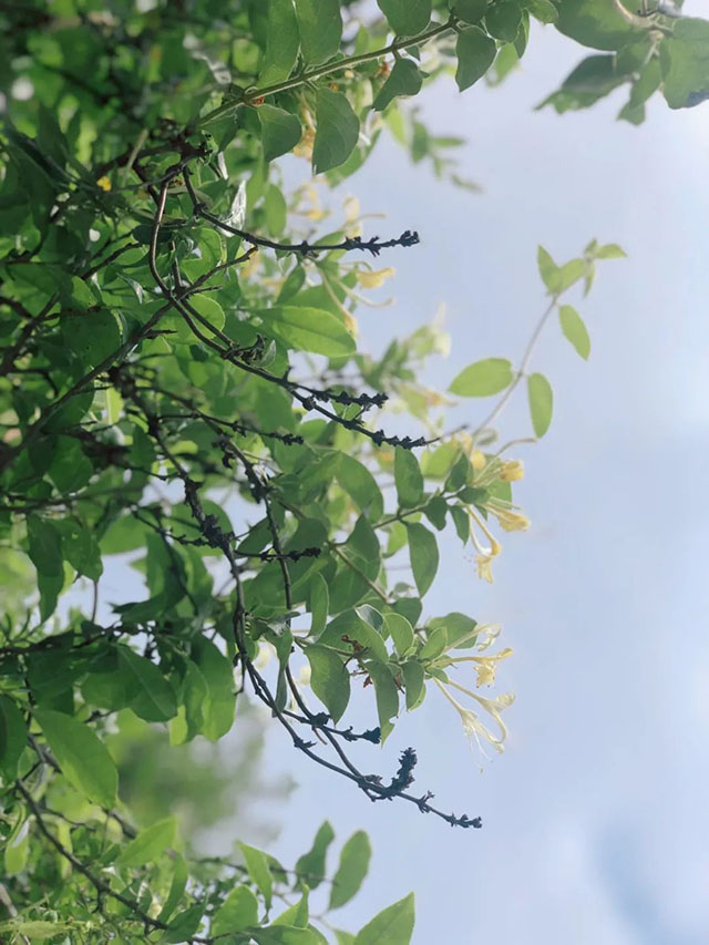 而不同的是,每當(dāng)寒冬降臨,萬(wàn)物枯竭,它卻能在嚴(yán)寒中依然蒼綠,正是這一抹綠色,才被人賦予“忍冬”這詩(shī)意的名號(hào)吧。