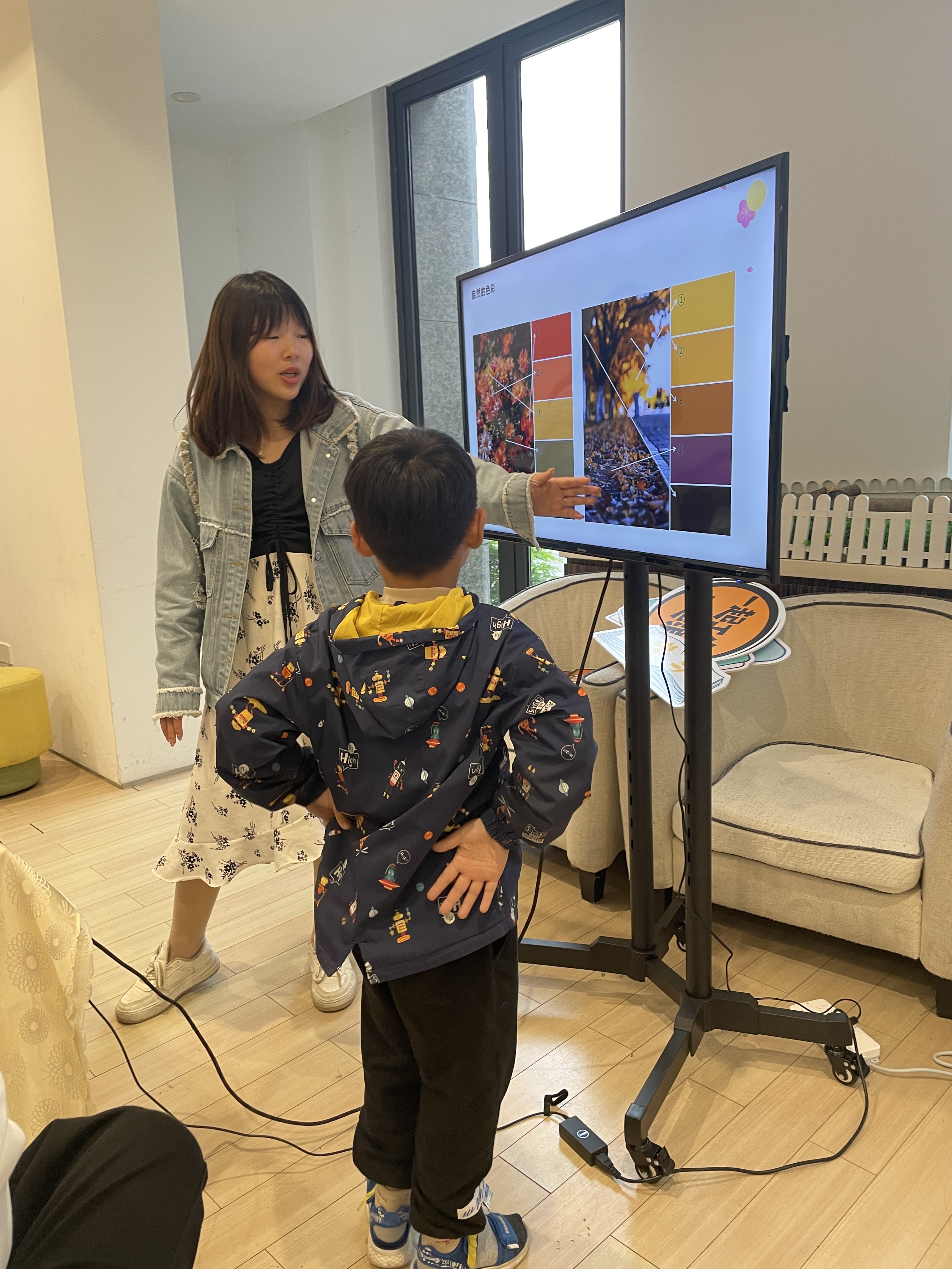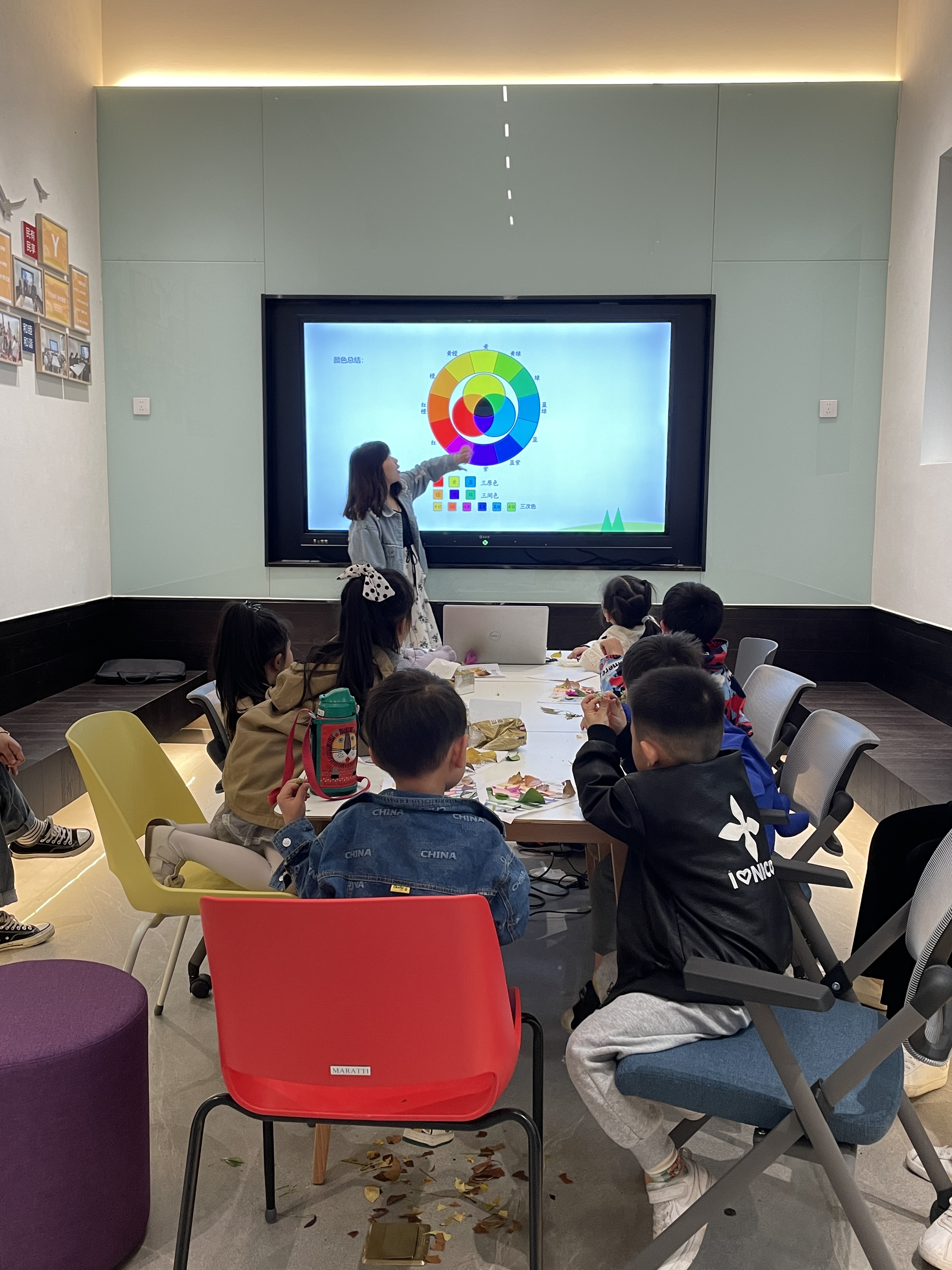 課堂上老師從三原色的故事,引出大自然中豐富的色彩,并讓小朋友們了解到色彩的生成與搭配,最后通過游戲問答。更加的鞏固了今天學到的色彩知識,讓我們一起擁抱大自然感受大自然色彩的神奇之處吧~