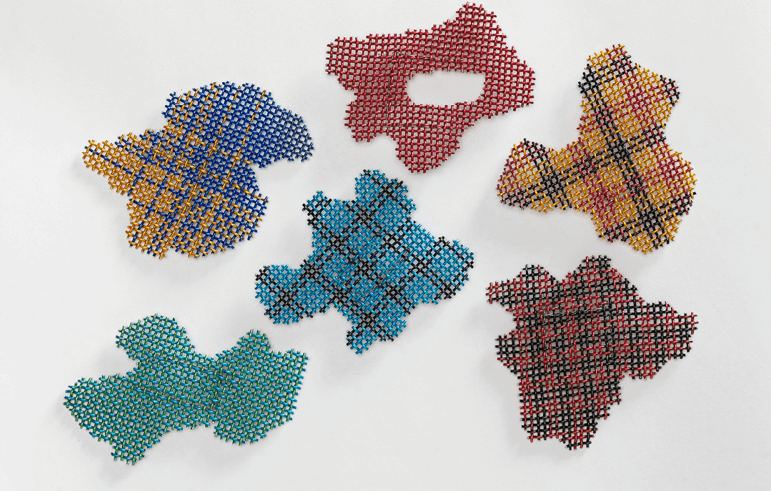 藝術(shù)家作為土生土長(zhǎng)的以色列人,經(jīng)常使用在耶路撒冷街頭撿到的石頭,或用金屬網(wǎng)模仿巴以沖突中以色列人用來(lái)保護(hù)汽車(chē)不受巴勒斯坦人破壞的鐵絲網(wǎng),也會(huì)使用交織的卷繞細(xì)銀線將抽象的數(shù)學(xué)公式轉(zhuǎn)化為三維表達(dá)。