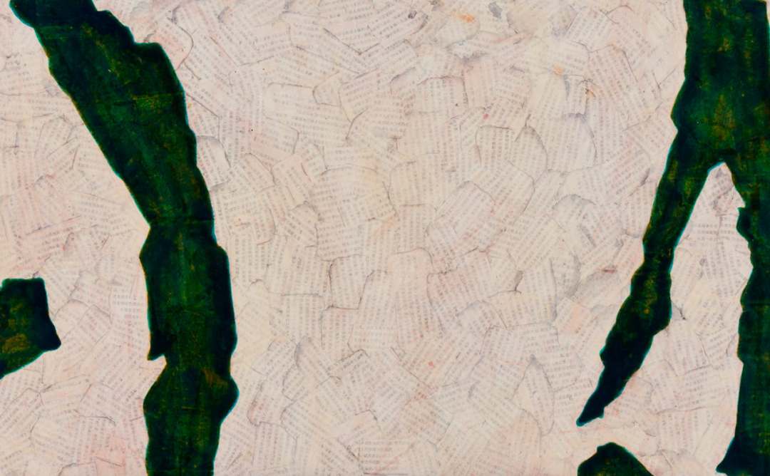 荻原美術(shù)館·銀杏館夏日展覽「形而上之旅程:中德當(dāng)代藝術(shù)展」,中方藝術(shù)家薛松將燃燒后的文本、圖片進(jìn)行結(jié)構(gòu)、重組于畫(huà)布上,原有的文本含義被賦予新的理解。在我們看來(lái)是殘物的印刷品碎片,在他的拼貼之下釋放新的意義,也使它們重獲新生。
