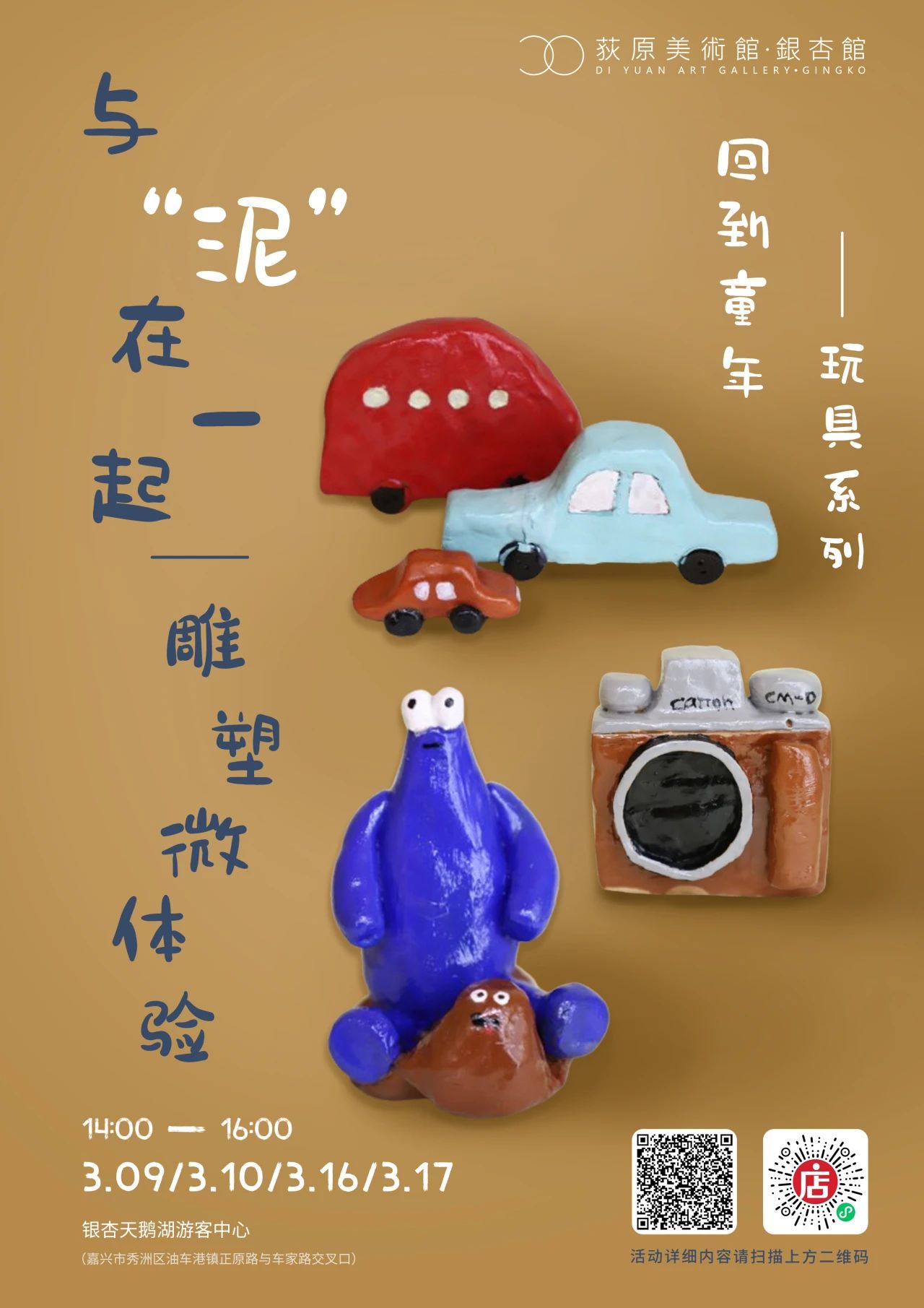 我們快樂玩耍時(shí)的大笑、興奮奔跑時(shí)的矯健、默默思索時(shí)的沉靜......每一個(gè)瞬間都是值得記錄的,它屬于我們記憶的一部分,讓我們用“泥土“來(lái)塑造一個(gè)個(gè)獨(dú)特的瞬間,記錄永恒的記憶吧! 活動(dòng)小tips 1、根據(jù)本次工作坊主題創(chuàng)造出不同造型的泥塑; 2、制作過程中使用噴壺工具控制泥坯表面干濕度,防止作品過快干燥出現(xiàn)裂縫; 3、捏出基本造型后運(yùn)用泥塑工具調(diào)整局部細(xì)節(jié),將作品雕刻成型(如需制作成裝飾品在這一步需要提前將零部件鑲嵌入內(nèi)也可完成后膠水粘接); 4、成型作品交由工作人員快速風(fēng)干; 5、風(fēng)干塑形后的泥坯用丙烯顏料進(jìn)行表面裝飾上色; 6、表面上色后待丙烯顏料干燥凝固完成再用亮油增加表面亮光度,亮油干燥后作品完成。 本次活動(dòng)適合成人和小朋友體驗(yàn),歡迎大家來(lái)到荻原美術(shù)館銀杏館,制作屬于“泥”的藝術(shù)!