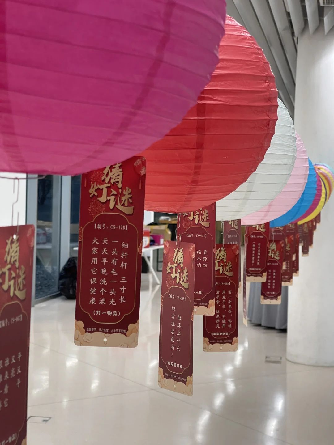 活動(dòng)現(xiàn)場,居民們看著一張張懸掛的謎語,時(shí)不時(shí)手里比劃著,互相探討,共同體驗(yàn)猜燈謎帶來的樂趣。內(nèi)容不僅有歇后語、成語、還有腦筋急轉(zhuǎn)彎大家在猜燈謎的過程中你一言我一語,活動(dòng)現(xiàn)場氣氛異常熱烈。